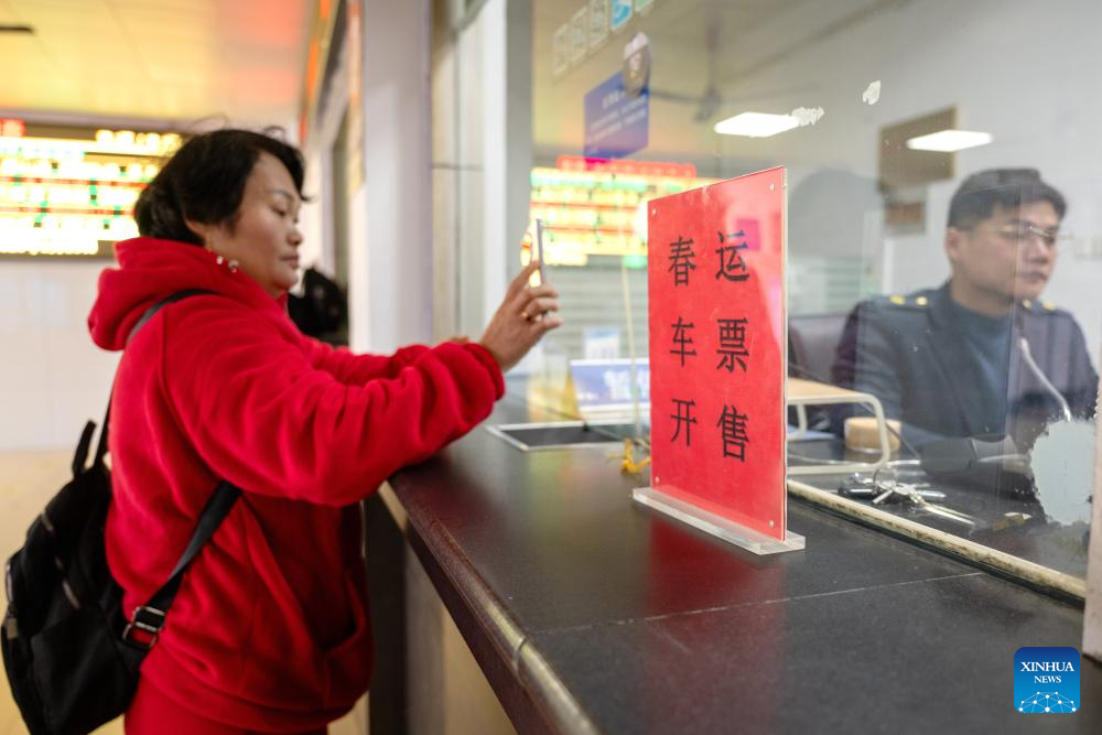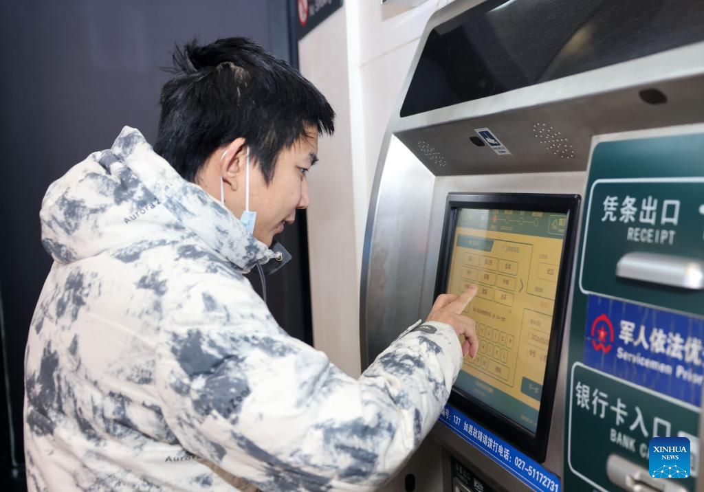 A passenger purchases train ticket at a railway station in Wuhan, central China's Hubei Province, Jan. 19, 2026. (Photo by Zhao Jun/Xinhua)
