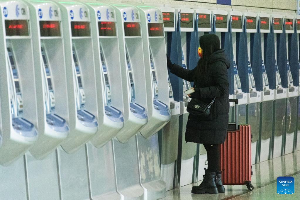 A passenger purchases train ticket at a railway station in Nanjing, east China's Jiangsu Province, Jan. 19, 2026. (Photo by Sun Zhongnan/Xinhua)