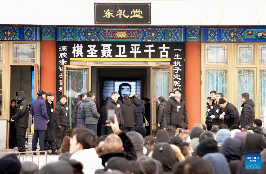 People attend the farewell ceremony of late Chinese Go master Nie Weiping at the east hall of the Babaoshan Funeral Parlour in Beijing, capital of China, Jan. 18, 2026. Chinese Go master Nie Weiping died at the age of 73 in Beijing on Wednesday night, the Chinese Weiqi (Go) Association announced on Thursday.