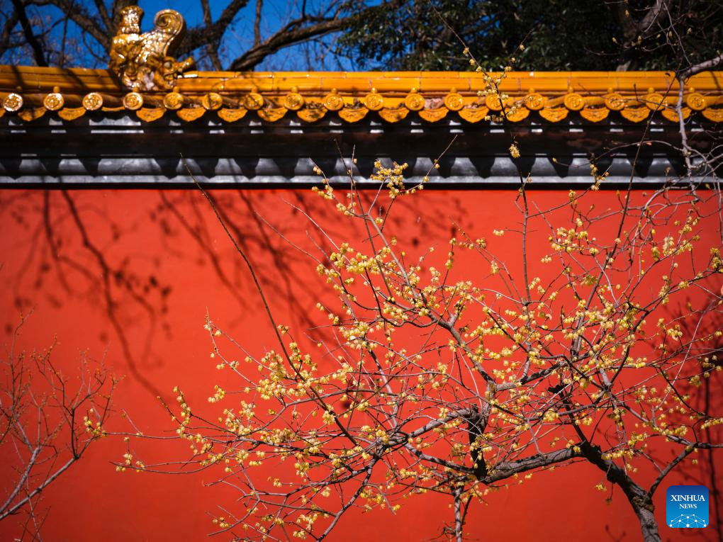 Wintersweet blossoms are seen at the imperial Xiaoling Mausoleum, the burial site of the Ming Dynasty's (1368-1644) founding emperor Zhu Yuanzhang, in Nanjing, east China's Jiangsu Province, Jan. 11, 2026. (Photo by Su Yang/Xinhua)