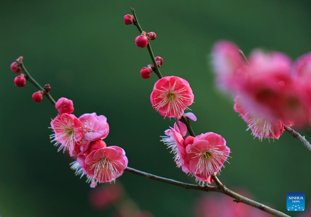 Plum blossoms are seen in Meihuashan scenic area of Nanjing, east China's Jiangsu Province, Jan. 15, 2026. (Photo by Yang Suping/Xinhua)