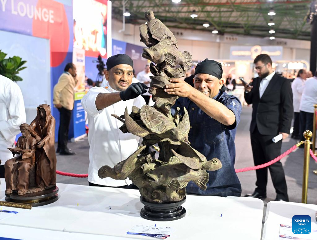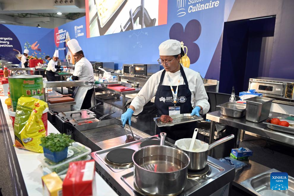 A cook prepares food during the HORECA Kuwait 2026 exhibition in Hawalli Governorate, Kuwait, Jan. 19, 2026. The exhibition was launched here on Monday and will continue until Jan. 21. HORECA is a combination of the words HO (hotels), RE (restaurants) and CA (cafes). (Photo by Asad/Xinhua)