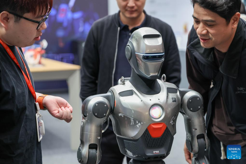 A customer learns about robot products at a robot store of ENGINEAI Robotics Technology Co., Ltd. in Futian District of Shenzhen, south China's Guangdong Province, Jan. 15, 2026. Recently, a number of retail stores in tech sector opened in many business districts of Shenzhen. In theses tech stores, consumers can experience smart electronic products such as embodied intelligent robots, 3D printing, and smart glasses. Shenzhen, a city at the forefront of China's intelligent manufacturing, is creating new scenarios of immersive retail consumption, bringing cutting-edge technology to consumers. (Xinhua/Liang Xu)