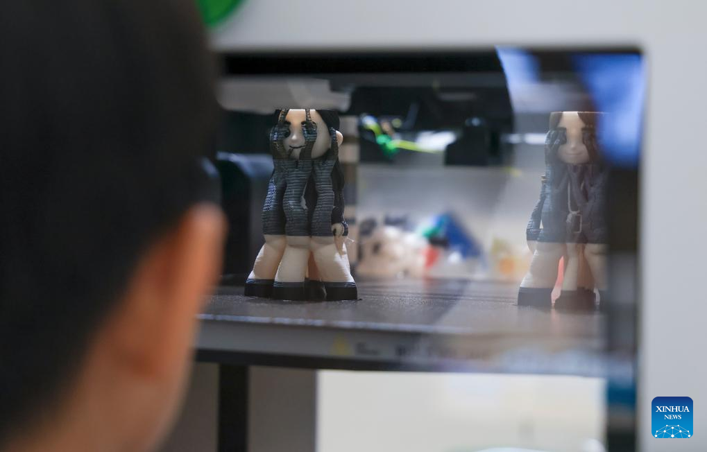 A customer watches a 3D printer working at the customization workstation in the inno100 flagship store in Nanshan District of Shenzhen, south China's Guangdong Province, Jan. 18, 2026. The workstation is equipped with various DIY devices such as 3D printers, allowing for personalized customization of products. Recently, a number of retail stores in tech sector opened in many business districts of Shenzhen. In theses tech stores, consumers can experience smart electronic products such as embodied intelligent robots, 3D printing, and smart glasses. Shenzhen, a city at the forefront of China's intelligent manufacturing, is creating new scenarios of immersive retail consumption, bringing cutting-edge technology to consumers. (Xinhua/Mao Siqian)