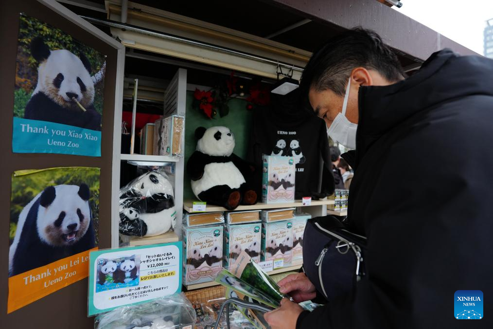 A visitor chooses souvenirs of giant panda Xiao Xiao and Lei Lei at Ueno Zoo in Tokyo, Japan, Dec. 25, 2025. Giant pandas Xiao Xiao and Lei Lei, currently residing at a zoo in Tokyo, will depart for China on Jan. 27, marking the first time in about half a century that Japan will be without any pandas, local media reported. (Xinhua/Jia Haocheng)