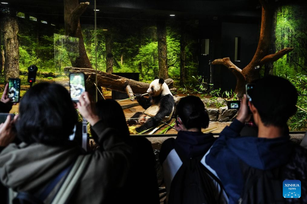 Visitors take photos of giant panda Xiao Xiao at Ueno Zoo in Tokyo, Japan, Dec. 25, 2025. Giant pandas Xiao Xiao and Lei Lei, currently residing at a zoo in Tokyo, will depart for China on Jan. 27, marking the first time in about half a century that Japan will be without any pandas, local media reported. (Xinhua/Jia Haocheng)