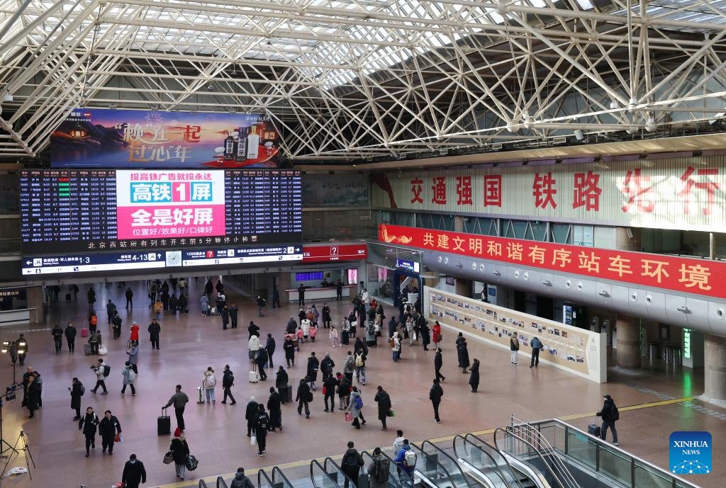 This photo taken on Jan. 21, 2026 shows an interior view of the Beijing West Railway Station in Beijing, capital of China. The Beijing West Railway Station marked its 30th anniversary on Wednesday. Over the past three decades, this modern transport hub has handled more than 1.96 billion passenger trips, standing as a witness to China's development and the evolution of its railway network. (Xinhua/Zhang Chenlin)