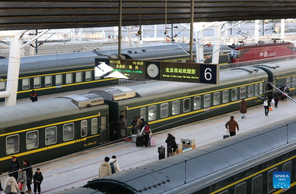 Passengers prepare for boarding on a platform at the Beijing West Railway Station in Beijing, capital of China, on Jan. 21, 2026. The Beijing West Railway Station marked its 30th anniversary on Wednesday. Over the past three decades, this modern transport hub has handled more than 1.96 billion passenger trips, standing as a witness to China's development and the evolution of its railway network. (Xinhua/Zhang Chenlin)