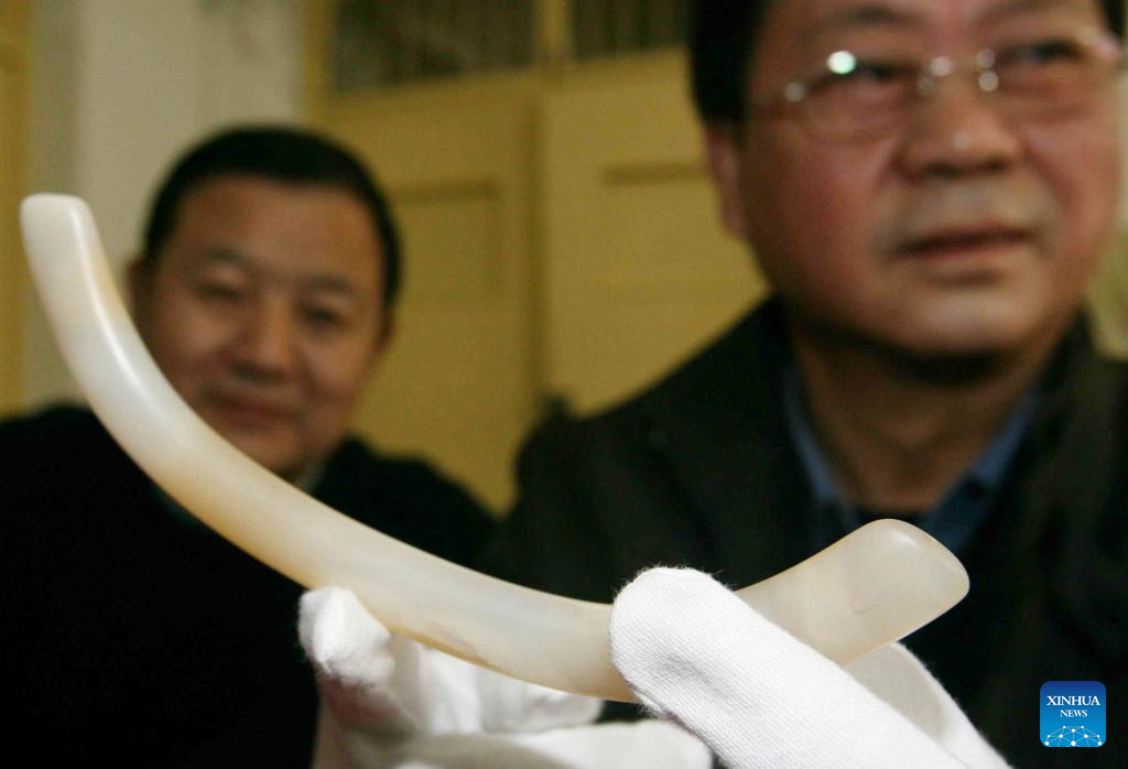 This file photo shows an archaeologist introducing a jade ware unearthed from the Lingjiatan relics site on Jan. 12, 2009. The Lingjiatan relics site in east China's Anhui is a Neolithic settlement dating back 5,300 to 5,800 years, with an area of about 1.6 million square meters.