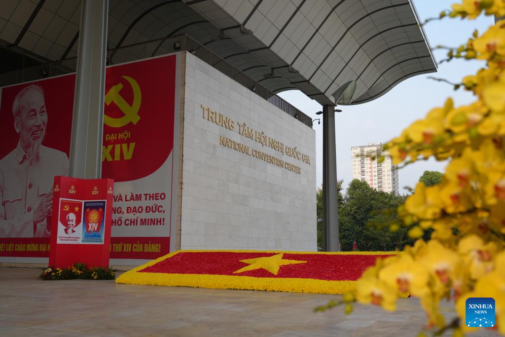 This photo taken on Jan. 19, 2026 shows the square in front of the National Convention Center in Hanoi, Vietnam. The ongoing 14th National Congress of the Communist Party of Vietnam (CPV) on Thursday elected the party's 14th central committee. (Xinhua/Liu Ying)