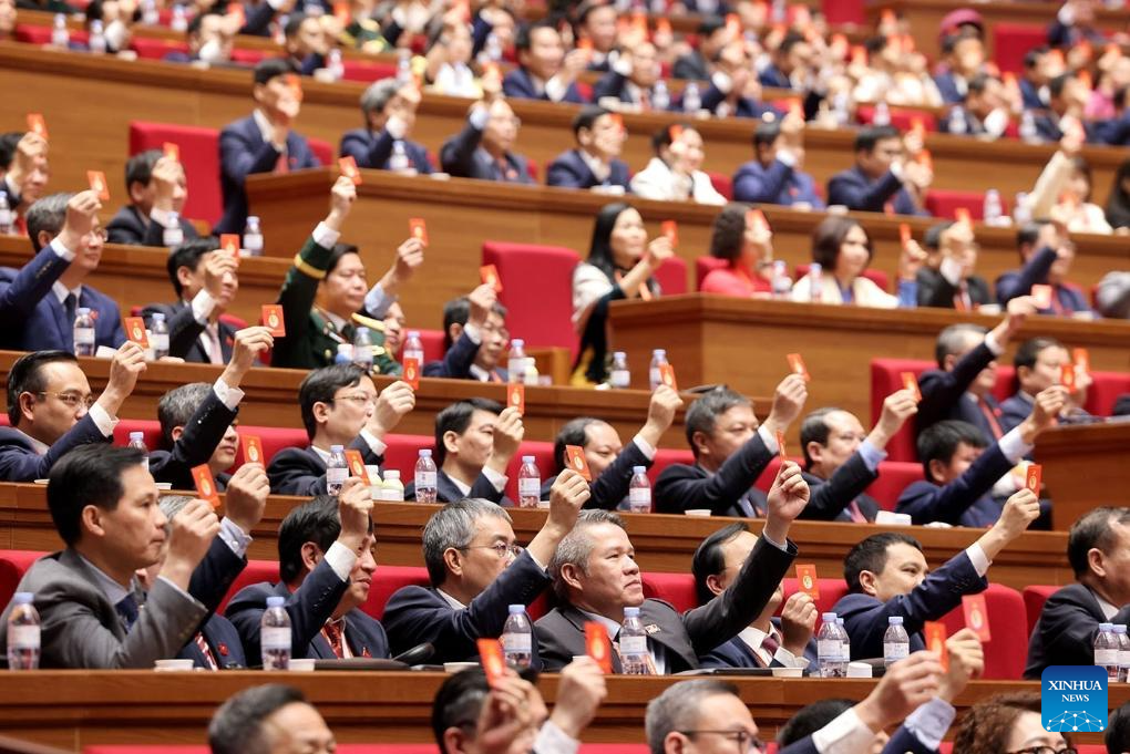 This photo taken on Jan. 21, 2026 shows a scene during a session of the 14th National Congress of the Communist Party of Vietnam at the National Convention Center in Hanoi, Vietnam. The ongoing 14th National Congress of the Communist Party of Vietnam (CPV) on Thursday elected the party's 14th central committee. (VNA via Xinhua)