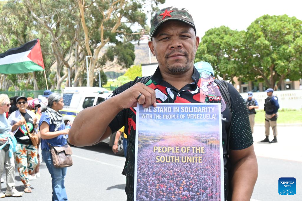 At the protest, Barry Mitchell, a member of the SACP's Central Committee, told Xinhua that the demonstration was aimed at condemning U.S. imperialism, in particular its action against Venezuela and the capture of its head of state.