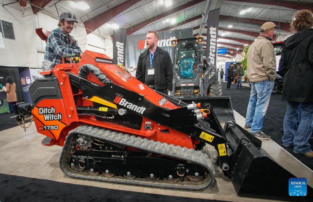 People look at a compact utility loader at the 2026 Pacific Agriculture Show in Abbotsford, British Columbia, Canada, Jan. 22, 2026. The event kicked off here on Thursday and runs until Jan. 24. (Photo by Liang Sen/Xinhua)