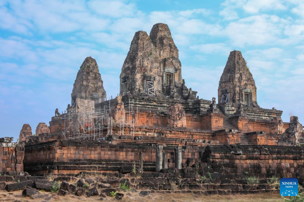 PHNOM PENH, Jan. 23 (Xinhua) -- Archaeologists have been restoring the ruined brick tower and laterite floor of Pre Rup temple in Cambodia's famed Angkor Archaeological Park, the APSARA National Authority (ANA) said in a news release on Friday.