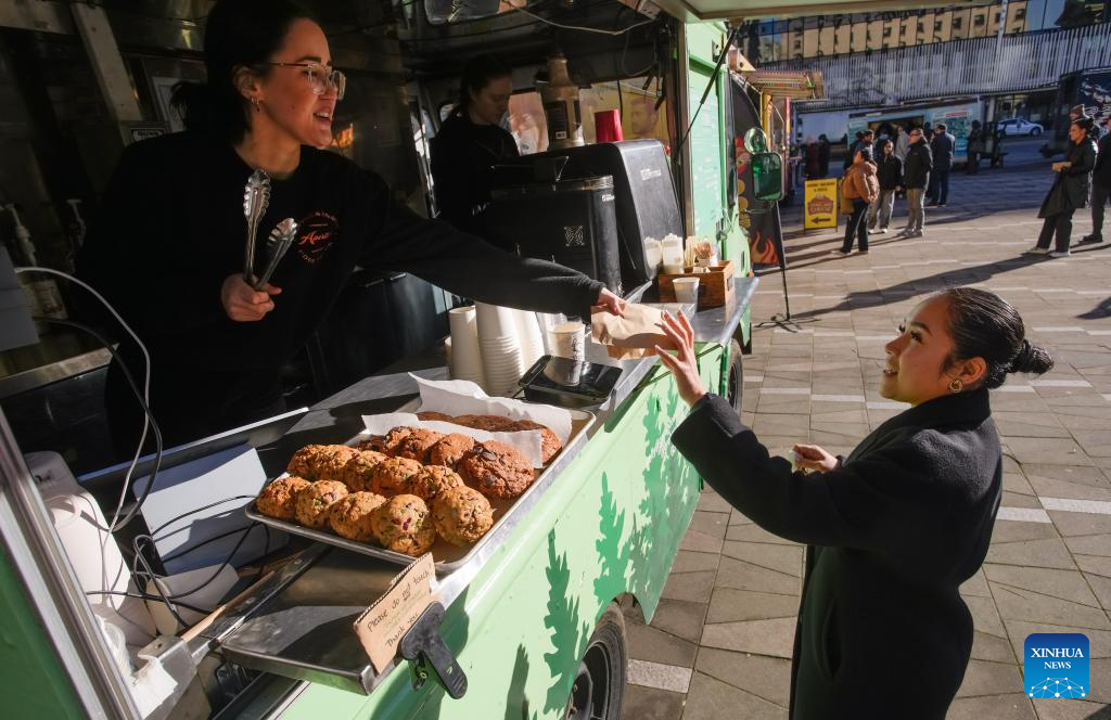 A vendor serves food to a customer from a food truck during the "Street Food City" event in Vancouver, British Columbia, Canada, Jan. 23, 2026. (Photo by Liang Sen/Xinhua)