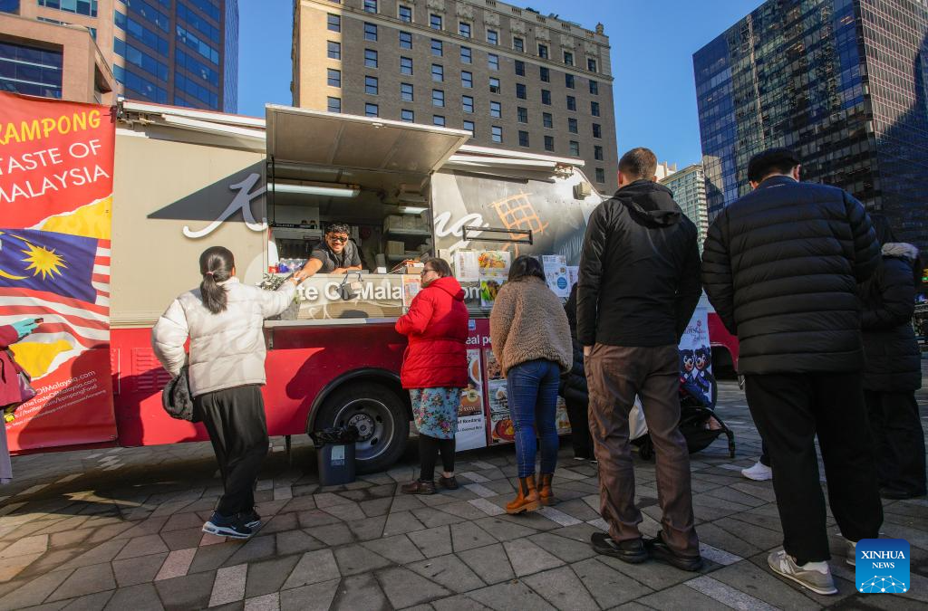 People line up in front of a food truck during the "Street Food City" event in Vancouver, British Columbia, Canada, Jan. 23, 2026. (Photo by Liang Sen/Xinhua)