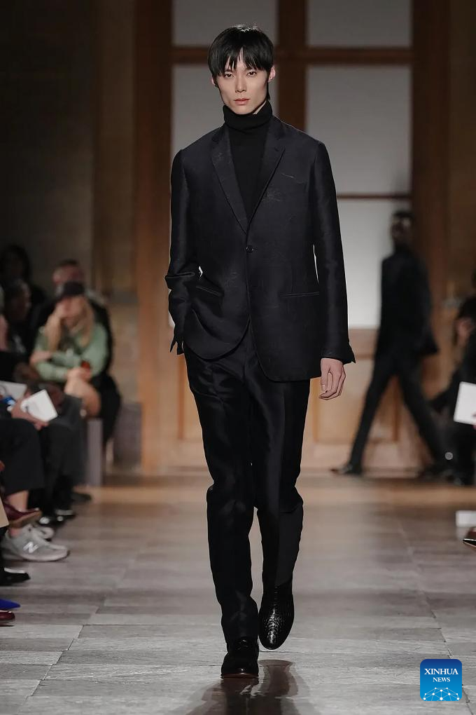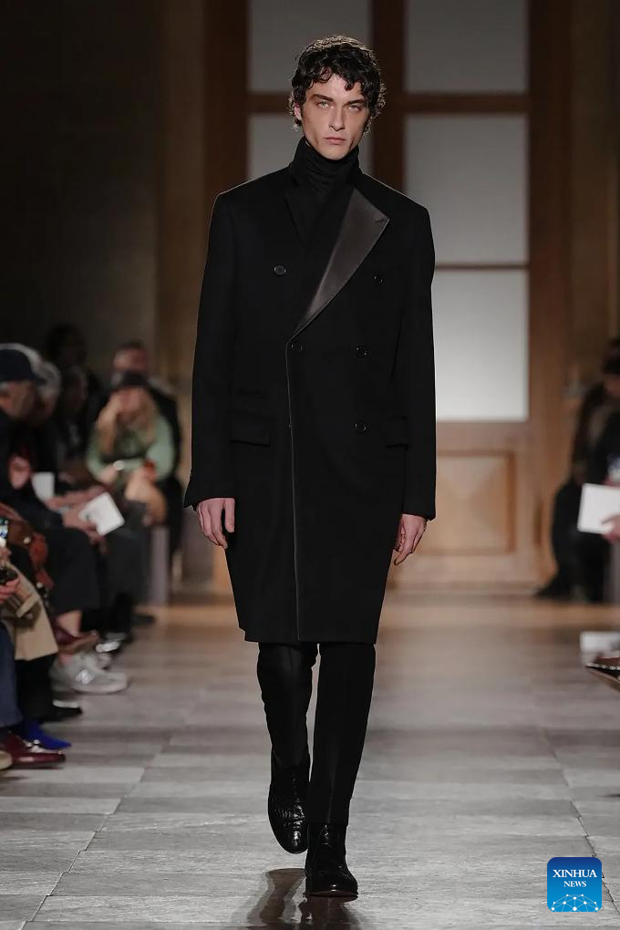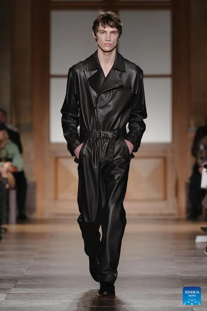 A model presents a creation from the menswear Fall/Winter 2026-2027 collections by Hermes during the Men Paris Fashion Week, in Paris, France, on Jan. 24, 2026. (MeetEurope/Handout via Xinhua)