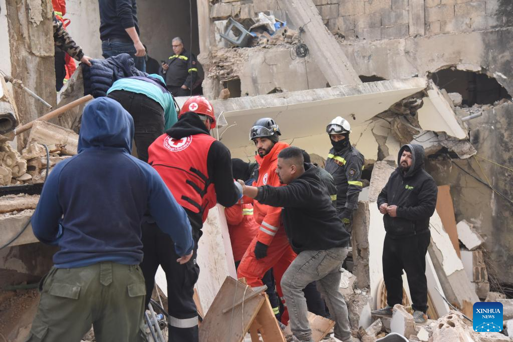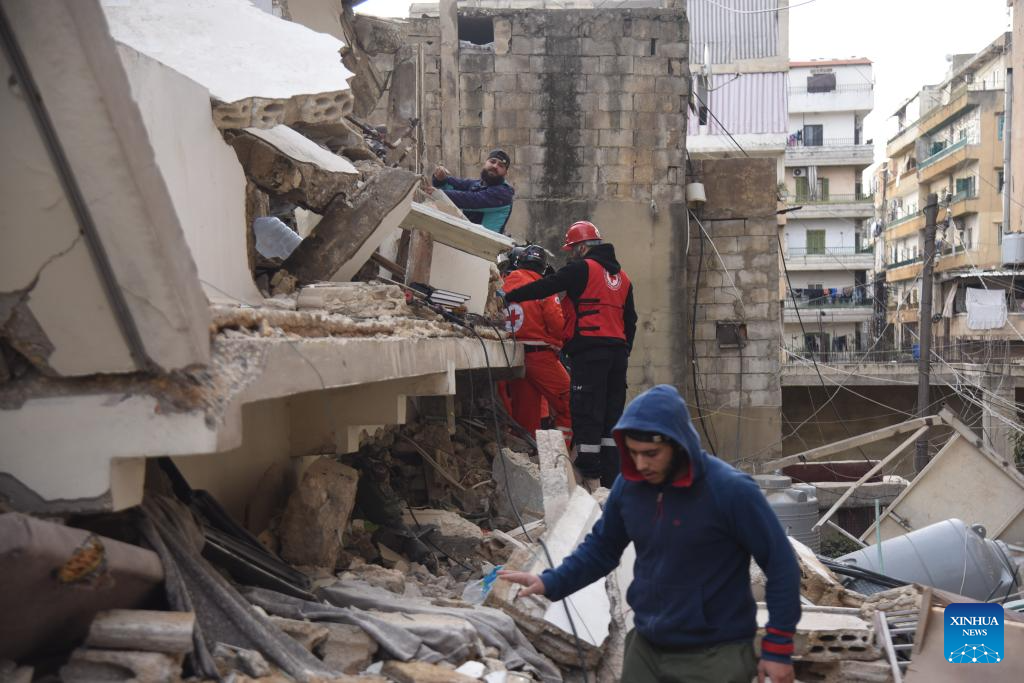 BEIRUT, Jan. 24 (Xinhua) -- At least two people were killed on Saturday after a five-story residential building collapsed at dawn in the Qobbeh area of Tripoli, northern Lebanon, the Civil Defense said.