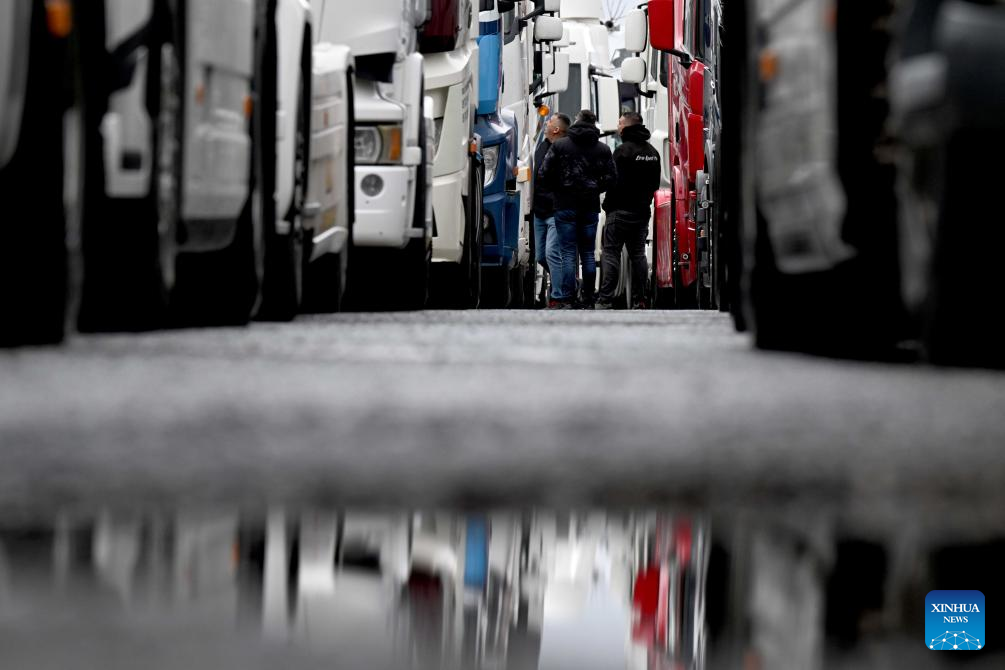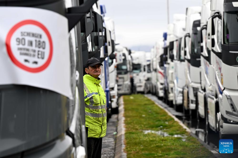 Truck drivers block EU border terminals to protest new EES in North Macedonia-Xinhua