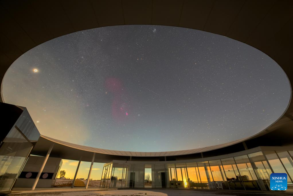 This photo taken on Jan. 24, 2026 shows a view of the starry sky in Fujin City, northeast China's Heilongjiang Province. China's northernmost Heilongjiang Province has entered the golden period for winter starry sky observation. With auroras occasionally making an appearance, the brilliant starry sky and the icy landscape together unfold a serene and breathtaking picture. (Photo by Qu Yubao/Xinhua)