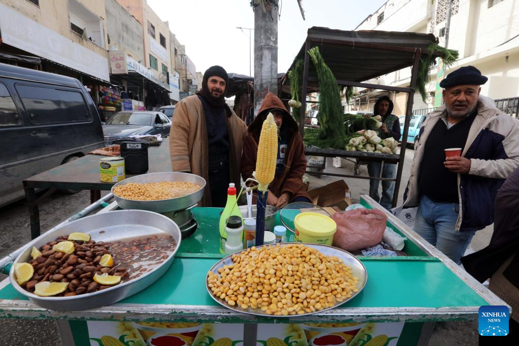 A food stall is seen in the Baqa'a refugee camp in Jordan, on Jan. 28, 2026.