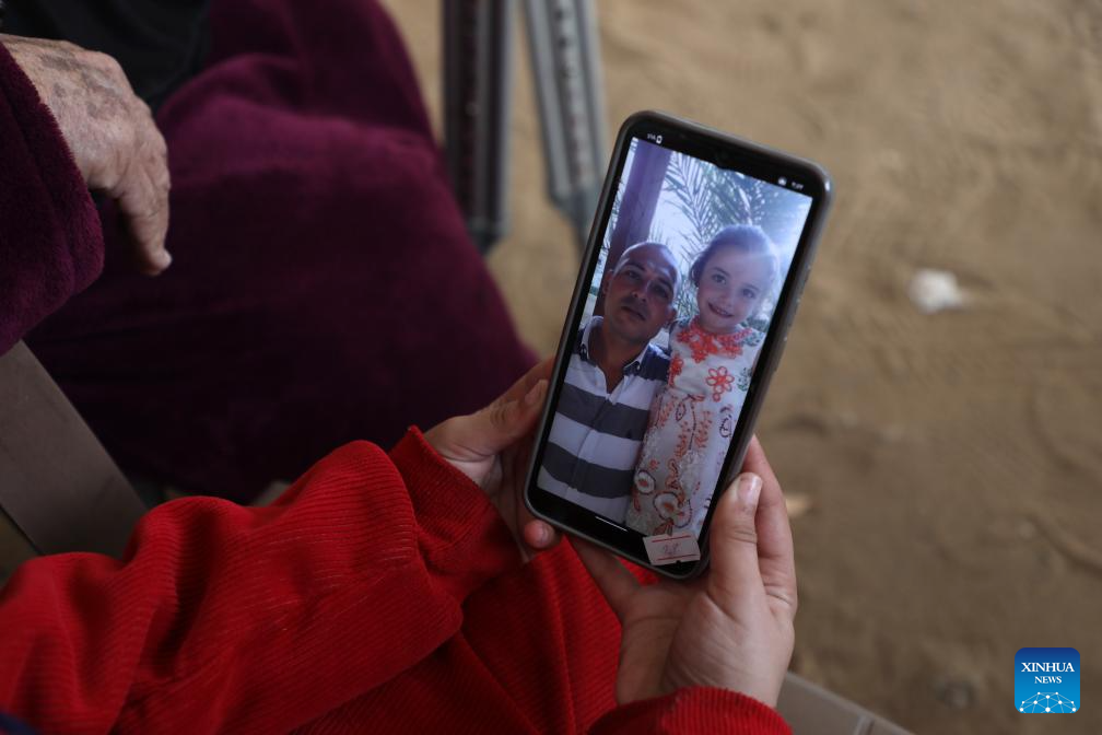 Palestinian girl Malak Khader looks at a photo at a temporary shelter east of Gaza City, on Jan. 27, 2026. The 9-year-old girl lost her leg and became the sole survivor of her family after the Israeli army bombed a shelter school where her family lived in Jabalia refugee camp, northern Gaza. Now, Malak lives with her 70-year-old grandmother who cares for her and fulfills her parents' role. (Photo by Rizek Abdeljawad/Xinhua)