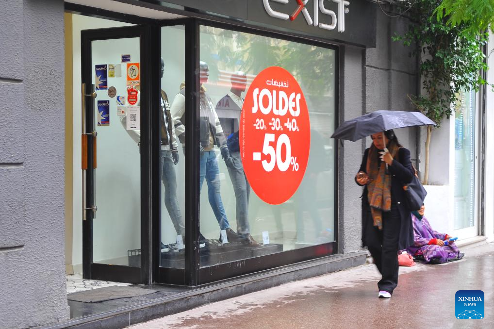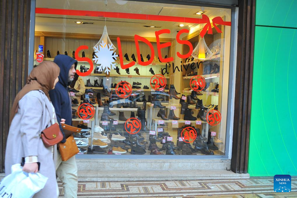 People walk past a shop during winter sales in Tunis, Tunisia, on Jan. 29, 2026. (Photo by Adel Ezzine/Xinhua)