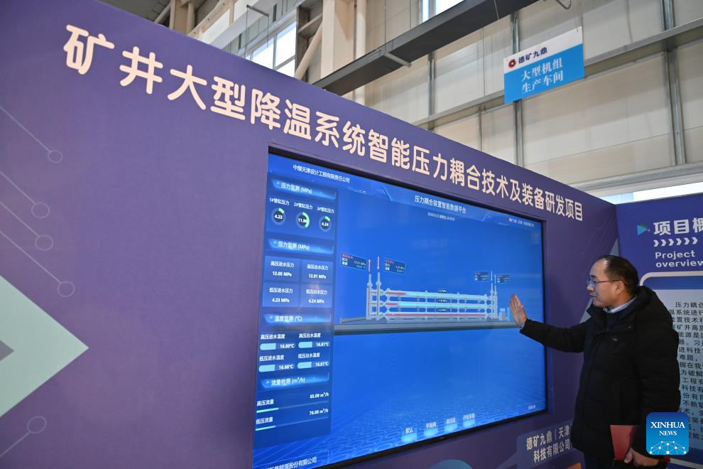 A staff member introduces pressure coupling devices at Dekuang Jiuding (Tianjin) Technology Co., Ltd. in the Beijing-Tianjin Zhongguancun Tech Town, in Tianjin, north China, Jan. 23, 2026.
