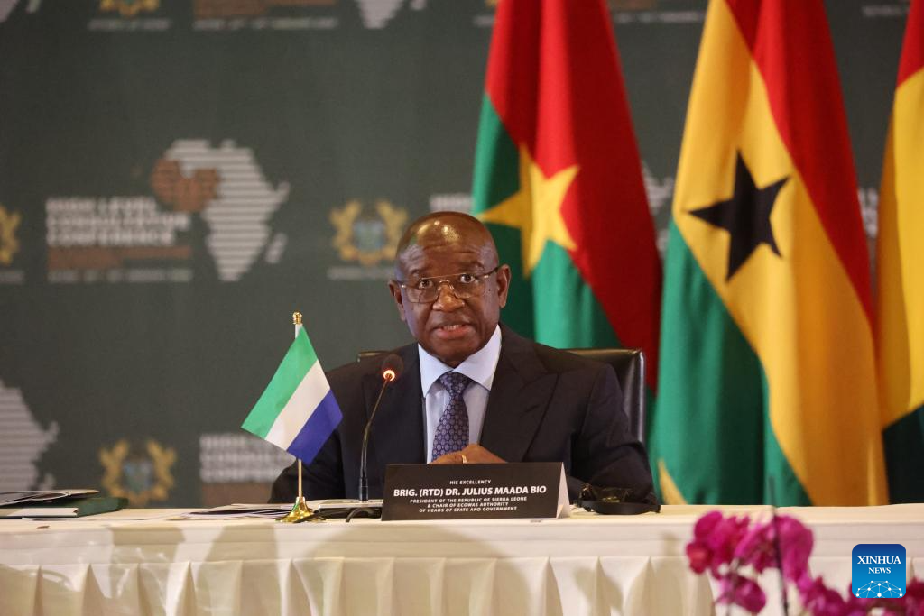 Sierra Leonean President Julius Maada Bio delivers a speech at the Presidential meeting of the High-Level Consultative Conference on Regional Cooperation and Security in Accra, Ghana, on Jan 30, 2026.