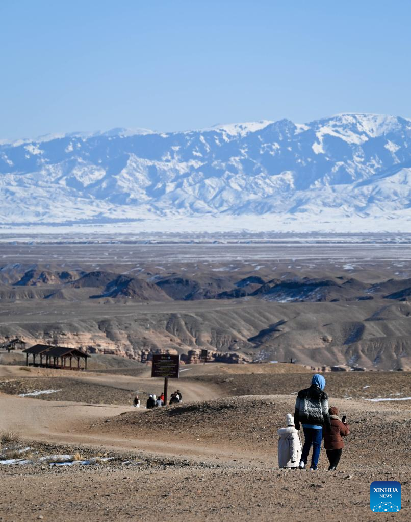 People visit the Charyn Canyon in Almaty Region, Kazakhstan, Jan. 30, 2026. (Xinhua/Li Renzi)