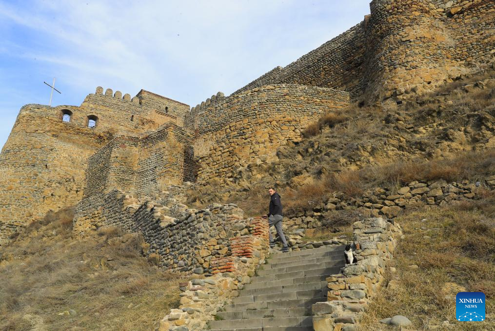 A visitor is seen at Gori Fortress in Gori, Georgia, Jan. 30, 2026. Inscribed on Georgia's Immovable Cultural Monuments of National Significance List, Gori Fortress is an important historic site located on a rocky hill in the city of Gori. The castle was originally built in the 6th-7th centuries, took its current form by the 18th century, and was severely damaged by an earthquake in 1920. (Xinhua/Chen Junfeng)
