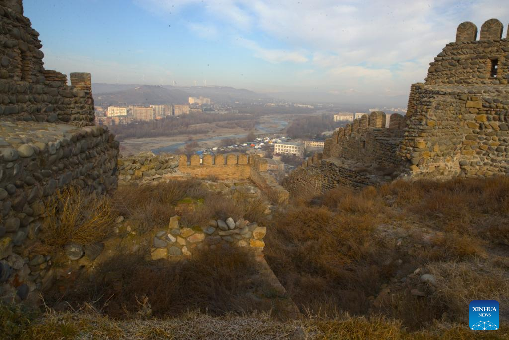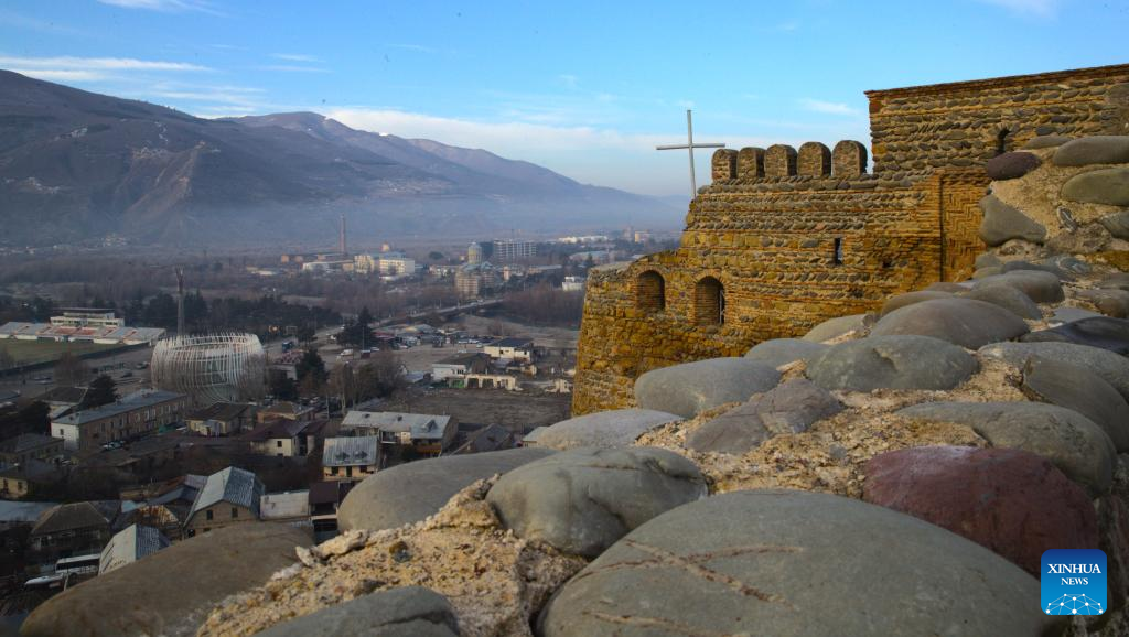 This photo taken on Jan. 30, 2026 shows a view from Gori Fortress in Gori, Georgia. Inscribed on Georgia's Immovable Cultural Monuments of National Significance List, Gori Fortress is an important historic site located on a rocky hill in the city of Gori. The castle was originally built in the 6th-7th centuries, took its current form by the 18th century, and was severely damaged by an earthquake in 1920. (Xinhua/Chen Junfeng)