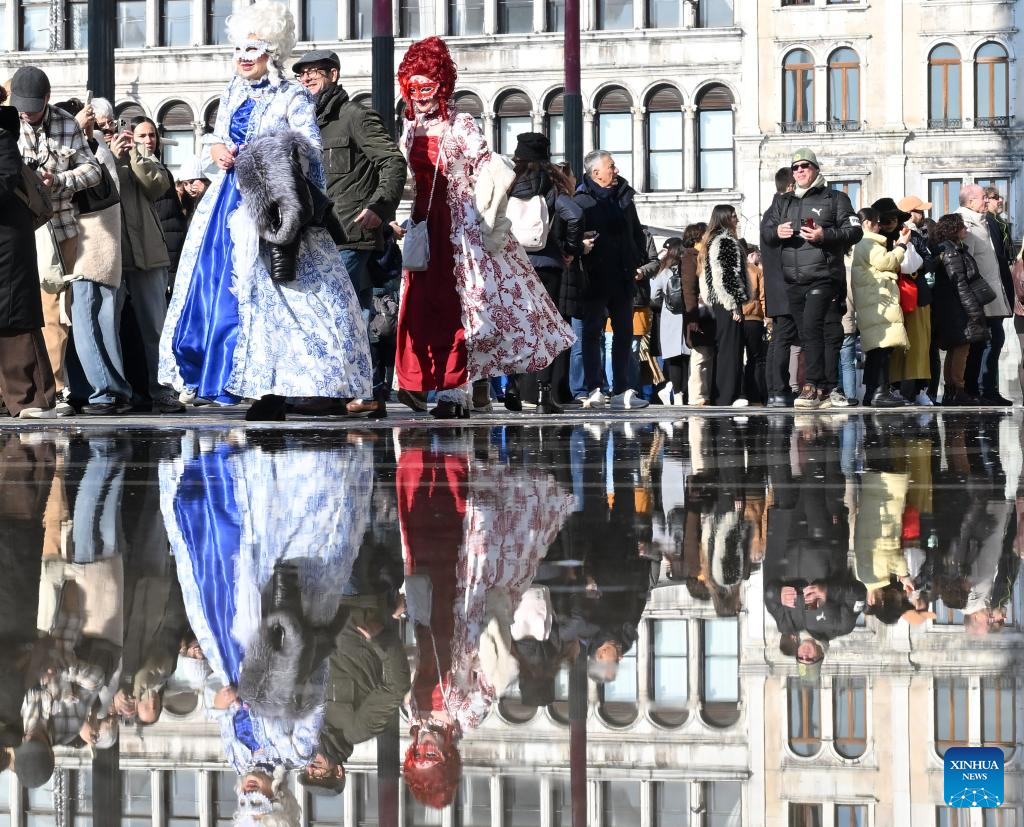People walk at St. Mark's Square during the Venice Carnival 2026 in Venice, Italy, Jan. 31, 2026. The 2026 version of the traditional Venice Carnival runs from Jan. 31 to Feb. 17. (Photo by Alberto Lingria/Xinhua)