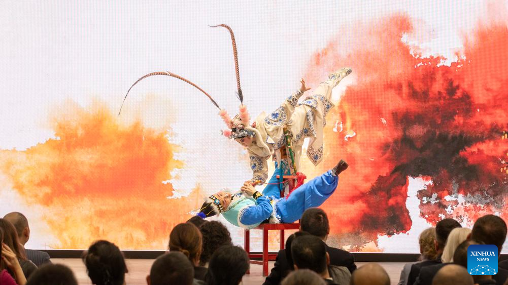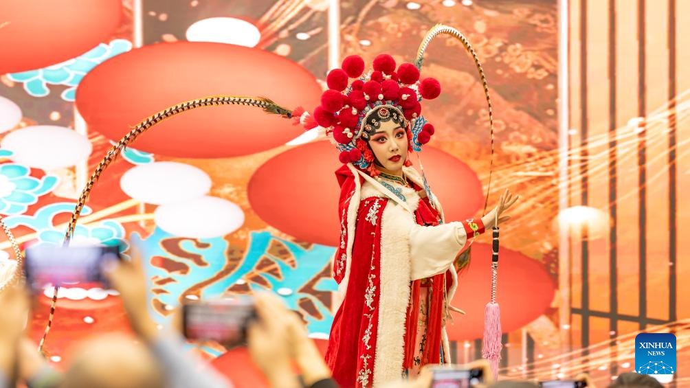 Artists stage a Sichuan Opera performance at the Chinese Cultural Center in Belgrade, Serbia, Jan. 30, 2026. An immersive music and opera gala at the Chinese Cultural Center in Belgrade drew hundreds of attendees on Friday evening, marking the launch of the 2026 Chinese New Year celebrations in Serbia. (Photo by Wang Wei/Xinhua)