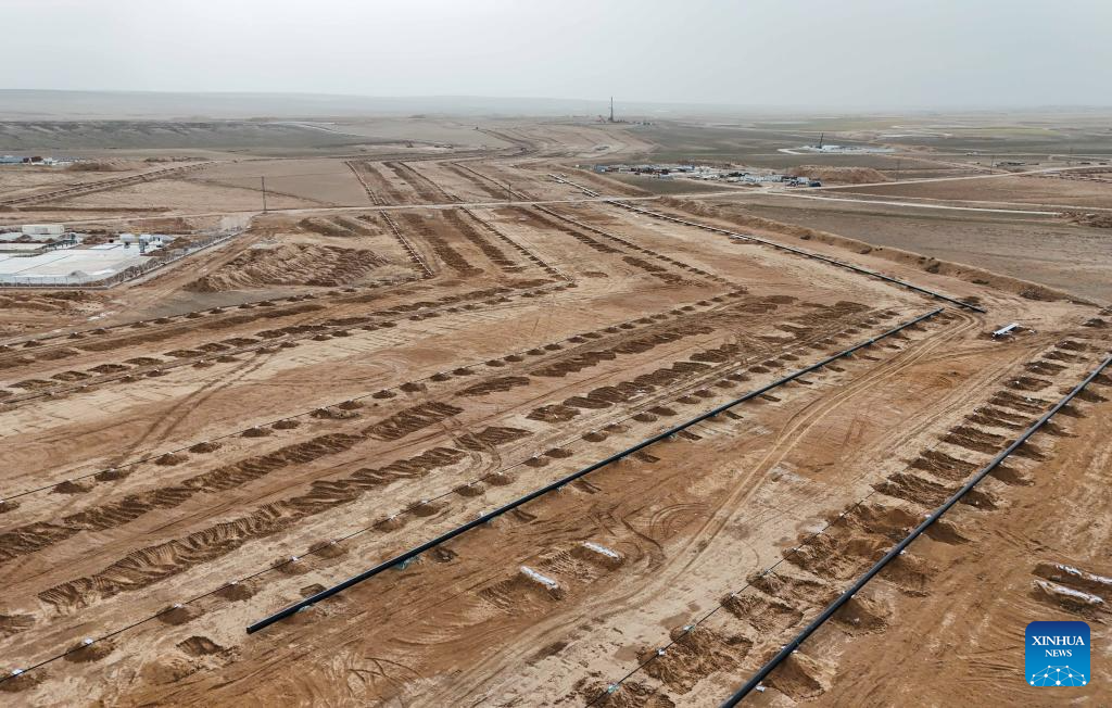 This photo taken on Jan. 30, 2026 shows the pipeline installation site of the Lake Tuz (Salt Lake) Underground Natural Gas Storage Project in Aksaray Province, Türkiye. Located in Aksaray Province, central Türkiye, the Lake Tuz (Salt Lake) Underground Natural Gas Storage Project is a key component of the country's energy infrastructure.