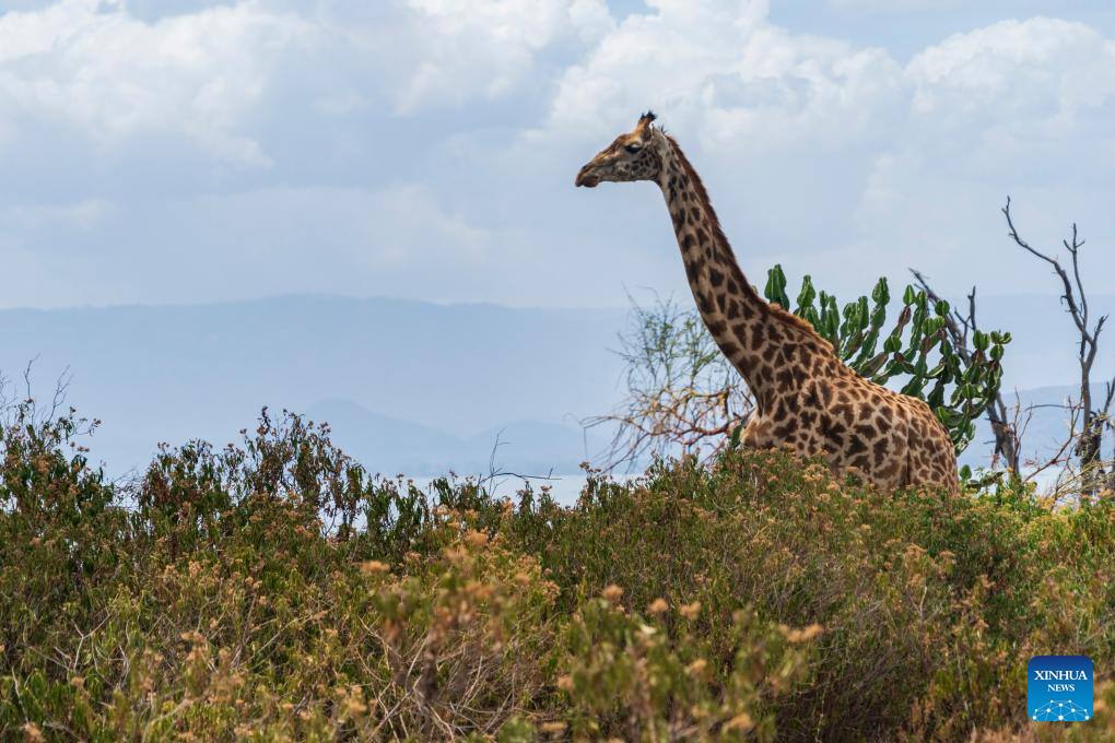 A giraffe is seen on the Crescent Island in Lake Naivasha in Nakuru County, Kenya, Feb. 1, 2026. World Wetlands Day is observed annually on Feb. 2 to raise global awareness of the vital role of wetlands for people, nature and culture.