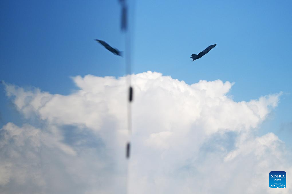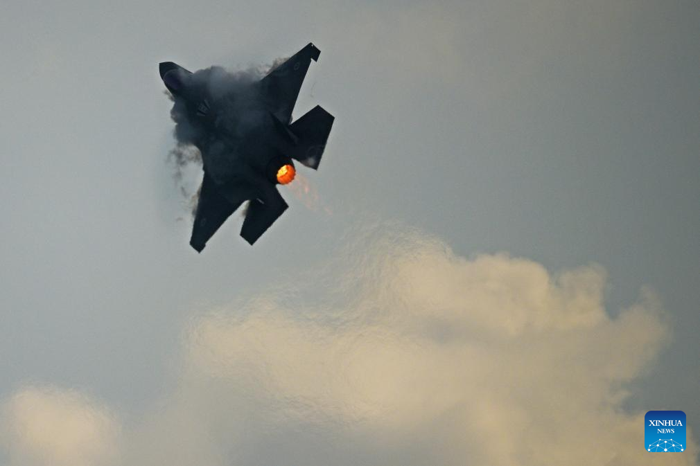 A Royal Australian Air Force (RAAF) F-35A fighter jet performs during the media preview for the 10th Singapore Airshow in Singapore, Feb. 1, 2026. The airshow will be held from Feb. 3 to 8 in Singapore. (Photo by Then Chih Wey/Xinhua)