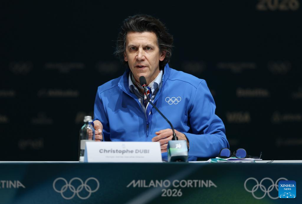 Olympic Games Executive Director Christophe Dubi attends the International Olympic Committee (IOC) Executive Board press conference at the main press center of Milan-Cortina 2026 Olympic Winter Games in Milan, Italy, Feb. 1, 2026. (Xinhua/Du Xiaoyi)