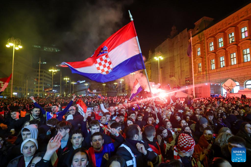 Croatia fans are seen during the ceremonial welcome for the Croatian Handball Team players in Zagreb, Croatia on Feb. 2, 2026. Croatia won the bronze medal at the 2026 EHF European Men's Handball Championship. (Photo by Marko Lukunic/PIXSELL via Xinhua)