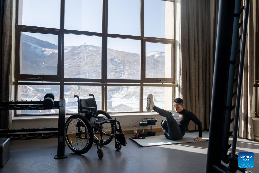 China's winter paralympic athlete Wang Tao attends a training session for Paralympic Winter Games Milan-Cortina 2026 in Ulanqab, north China's Inner Mongolia Autonomous Region, Feb. 3, 2026. (Xinhua/Lian Zhen)