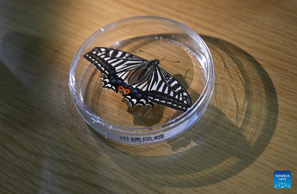 This photo taken on Feb. 2, 2026 shows the specimen of a butterfly at the Center of Space Exploration under Ministry of Education, in Chongqing University, southwest China's Chongqing.