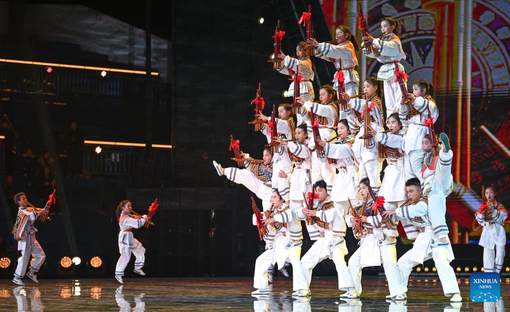Children perform Lusheng Dance during a "village gala" in Taipan Village of Taijiang County, southwest China's Guizhou Province, Feb. 3, 2026.
