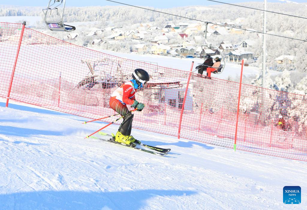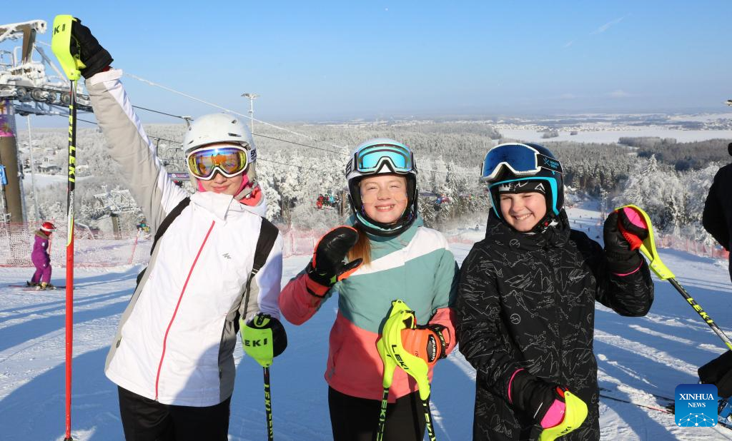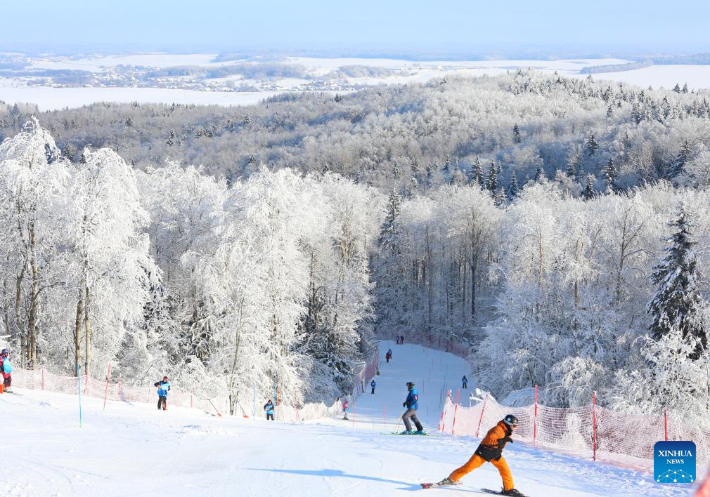 People ski at a ski resort in Minsk region, Belarus, Feb. 3, 2026. (Photo by Henadz Zhinkov/Xinhua)