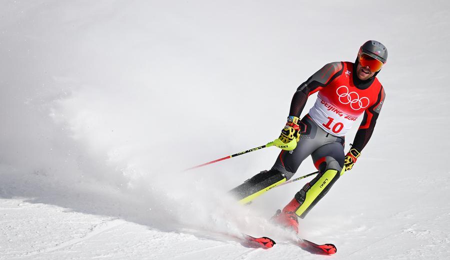 Aleksander Aamodt Kilde of Norway in action during the Olympic alpine skiing men's alpine combined of Beijing 2022 at the National Alpine Skiing Center in Yanqing District, Beijing, Feb. 10, 2022. (Xinhua/Lian Zhen)