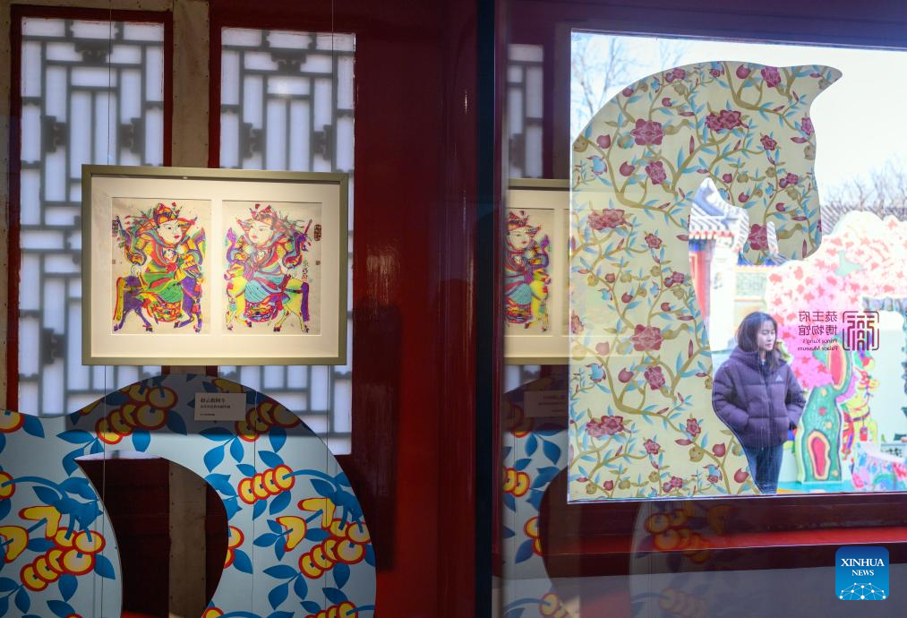 This photo taken on Feb. 4, 2026 shows a Chinese New Year paintings exhibition at the Prince Kung's Palace Museum in Beijing, capital of China. An exhibition displaying more than a hundred exquisite Chinese New Year paintings collected by Prince Kung's Palace Museum opened here on Wednesday. (Xinhua/Jin Liangkuai)