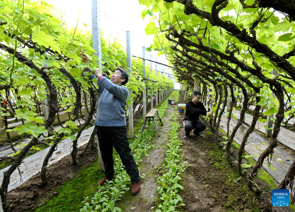 In recent years, local farmers in Tangshan Port economic development zone are encouraged to develop facility agriculture on farm produce such as grapes, peaches and tomatoes, which has become a new highlight for rural revitalization here. (Xinhua/Yang Shiyao)