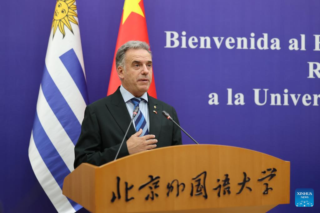 President of the Oriental Republic of Uruguay Yamandu Orsi visits the Beijing Foreign Studies University (BFSU) in Beijing, capital of China, Feb. 4, 2026. (Xinhua/Lu Ye)