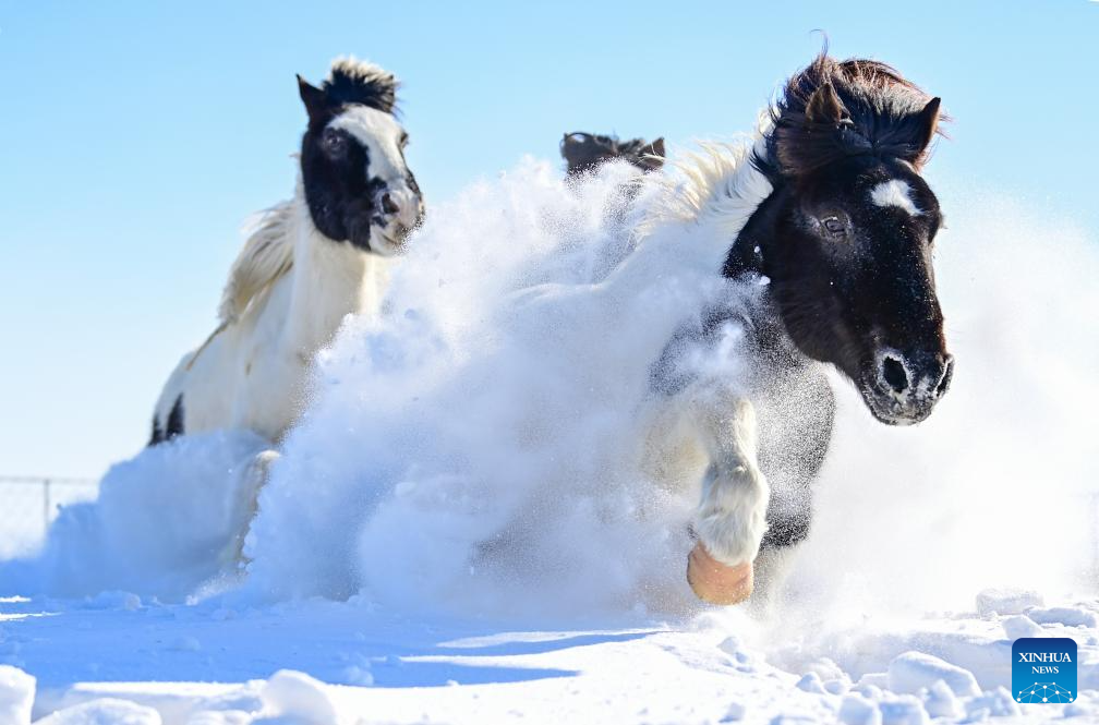 Horses run on a snowfield during a new year event in Xilinhot City, Xilingol League, north China's Inner Mongolia Autonomous Region, Feb. 5, 2026. (Photo by Wang Zheng/Xinhua)