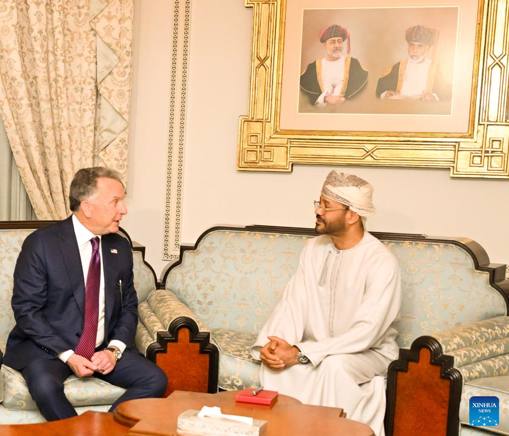Omani Foreign Minister Sayyid Badr bin Hamad bin Hamood Albusaidi (R) meets with the U.S. president's special envoy Steve Witkoff in Muscat, Oman, Feb. 6, 2026. Oman's Foreign Ministry said on Friday that the ongoing indirect talks between Iranian and U.S. delegations in Muscat are focused on preparing the ground for the resumption of diplomatic and technical negotiations on the Iranian nuclear issues. (Xinhua)