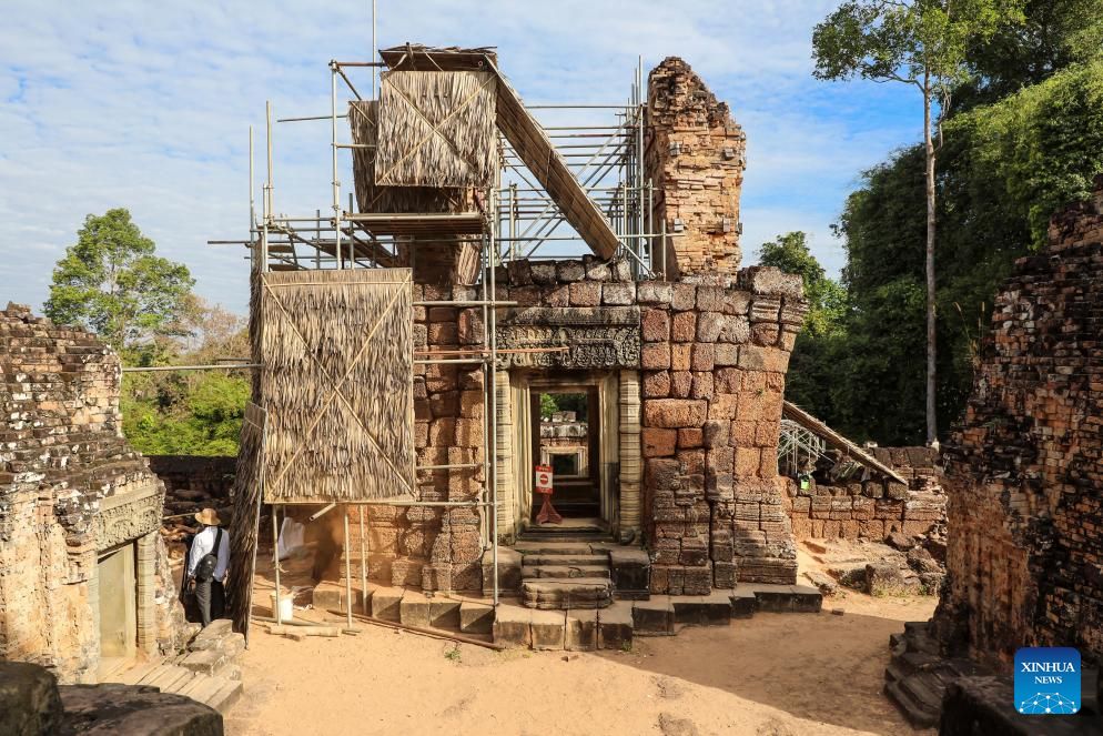 Archaeologists have been undertaking the restoration of the deteriorated north gate of centuries-old East Mebon Temple in Cambodia's famous Angkor Archaeological Park, the APSARA National Authority (ANA) said in a news release on Friday. (ANA/Handout via Xinhua)